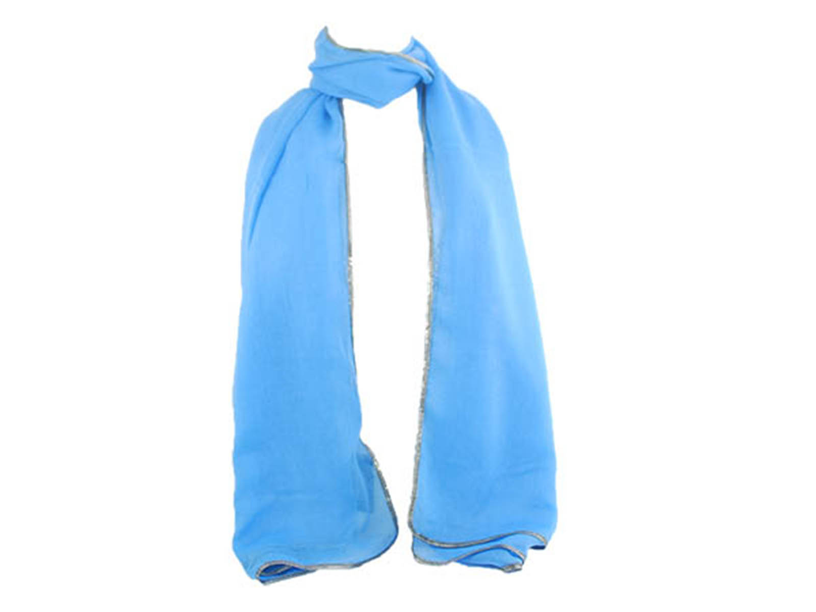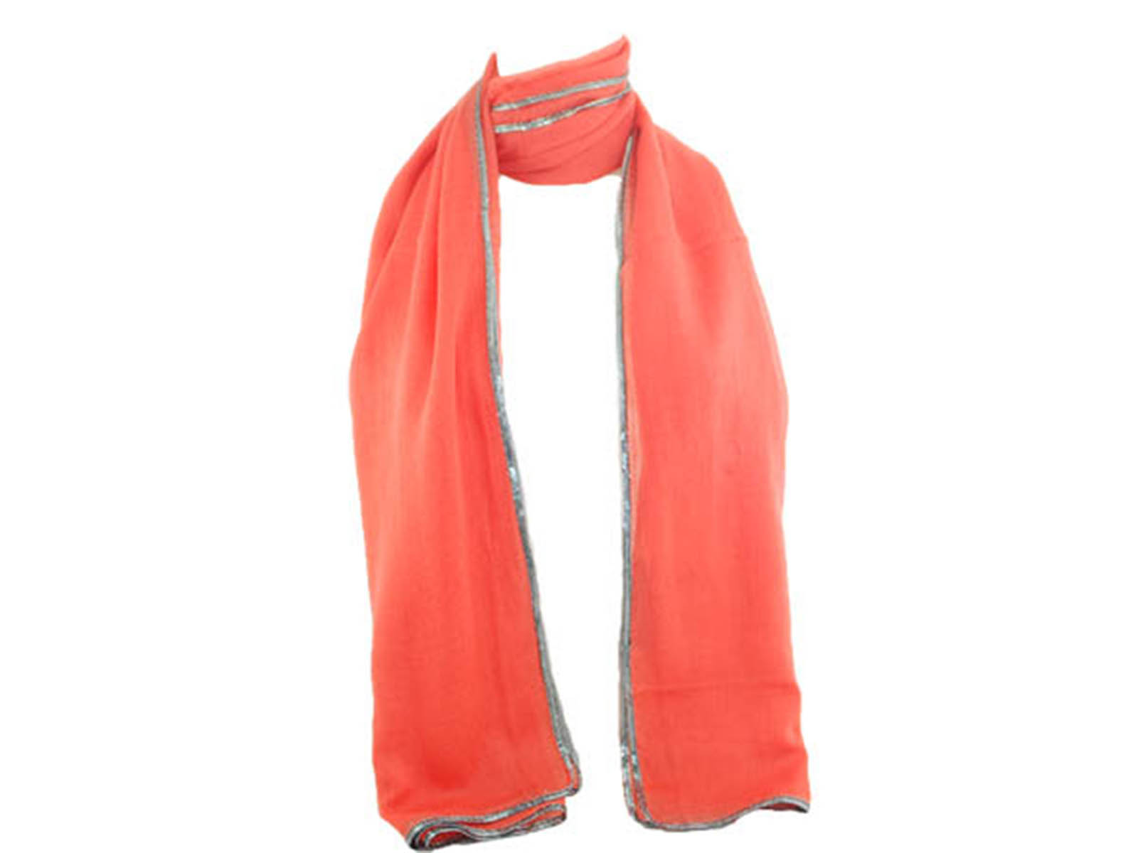 scarlet bijoux – Schal, zeitlos schön, rundum mit silbrig glänzendem Band eingefasst, angenehmer Tragekomfort, 100 % Polyester, 110 x 160 cm