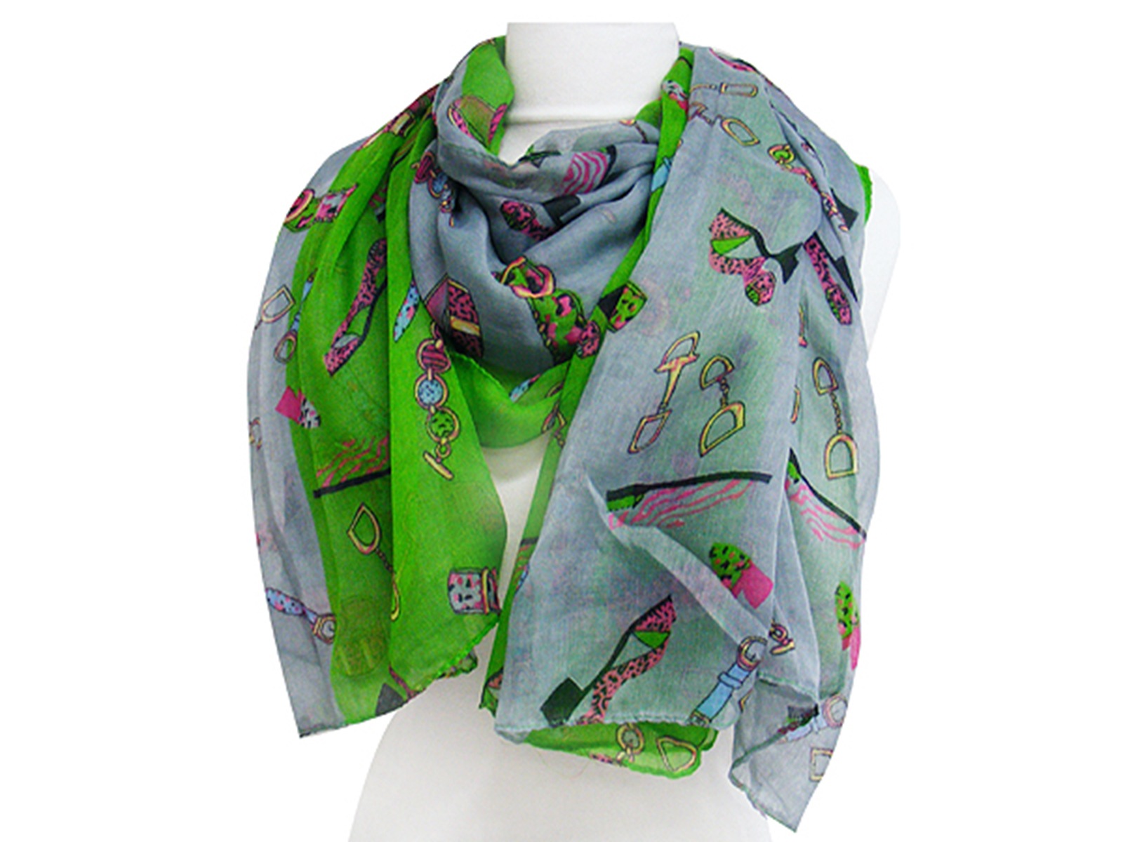 scarlet bijoux – Halstuch, längliches, fein gewebtes Halstuch mit farblich und inhaltlich abstrahierten Darstellungen von Objekten, zarter Schal mit zweifarbigem Verlauf und feinem Saum als Abschluß, hoher Tragekomfort, 100% Viscose, Größe ca. 180×110 cm