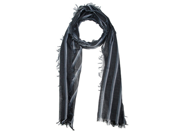 scarlet bijoux – Schal im Streifen-Look, schöner Farbverlauf und rundum kurze Fransen, angenehmer Tragekomfort, 100 % Baumwolle, Breite ca. 50 cm, Länge 180 cm