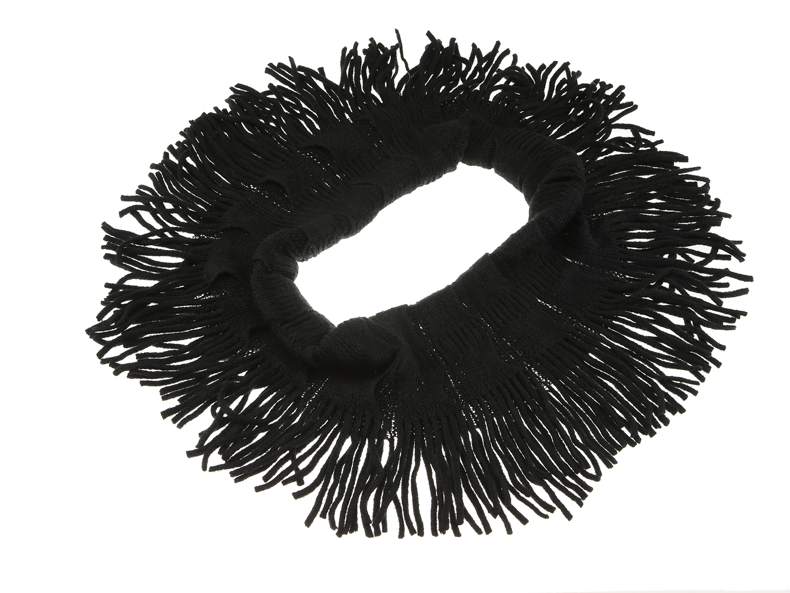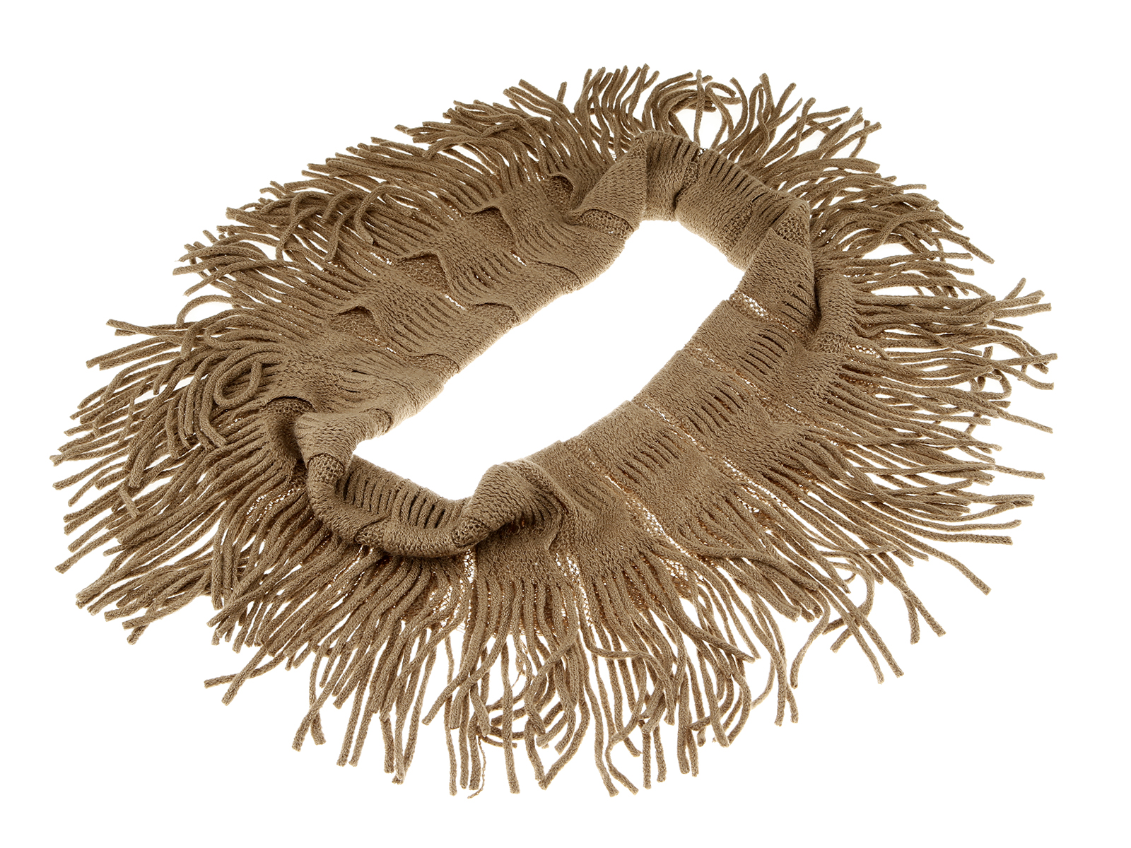 scarlet bijoux – Loopschal, doppellagige Strickmuster und Durchbrüche in Blockformationen, beidseitig verjüngt sich das Strickmuster zu 10 cm lange Fransen, angenehmer Tragekomfort, 100 % Polyacryl, B 50 x L 20 cm ohne Fransen – eng anliegend !